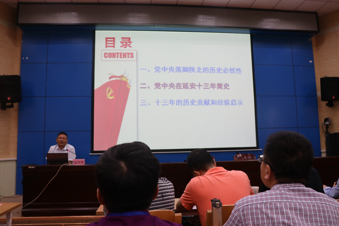 开班仪式后,延安大学泽东干部学院副院长高凤林教授向全体学员作了题为《党中央在延安十三年》的专题报告。报告围绕党中央落脚陕北的历史必然性、如何认识党中央在延安十三年的历史、读懂了延安就读懂了什么是马克思主义中国化、读懂了延安就读懂了什么是苦难出辉煌等十余个方面的内容,对延安革命精神作了详细全面的解读,深刻阐述了延安精神的新时代意义及对广大高校教师和党员提升党性修养的现实作用。学员们边听边记,边学边思,课堂气氛活跃。报告结束后,全体学院对高凤林教授的报告内容与演讲风格给予了高度赞赏和肯定。